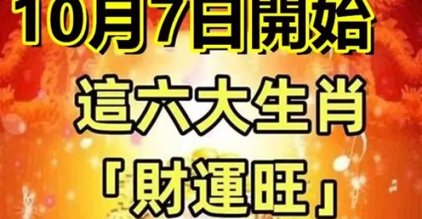 六大生肖運勢飄紅:10月6號偏財最旺,7號發橫財,8號中頭獎 !