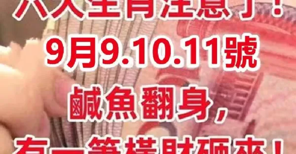 9月9.10.11號鹹魚翻身,有一筆橫財砸來