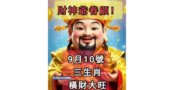 財神爺眷顧!9月10號 三生肖 橫財大旺