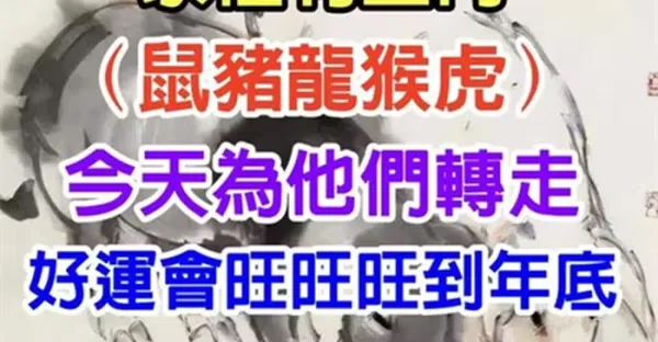 家裡有生肖(鼠豬龍猴虎)今天要為他們轉走,好運會旺旺旺到年底!
