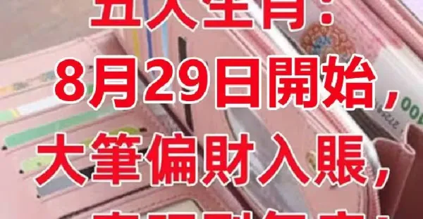 8月29日開始大筆偏財入帳,一直旺到年底的生肖!