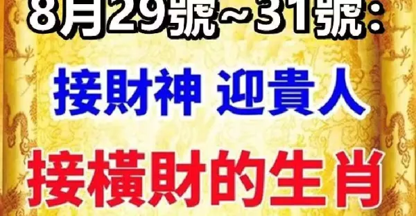 8月29號~31號:接財神,迎貴人,接橫財的生肖!