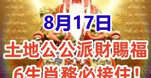 8月17日:土地公公派財賜福,6生肖務必接住!接了就有頭獎中!