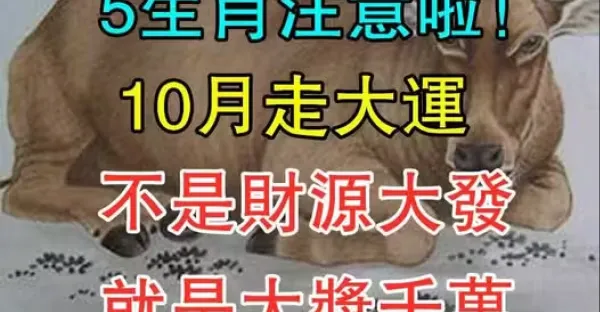 5生肖注意啦!10月走大運,不是財源大發,就是大獎千萬~