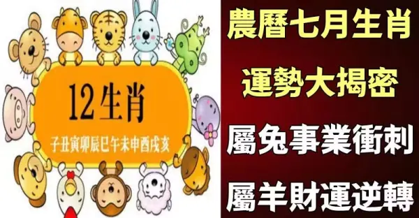農曆七月生肖運勢大揭密:屬兔事業衝刺、屬羊財運逆轉