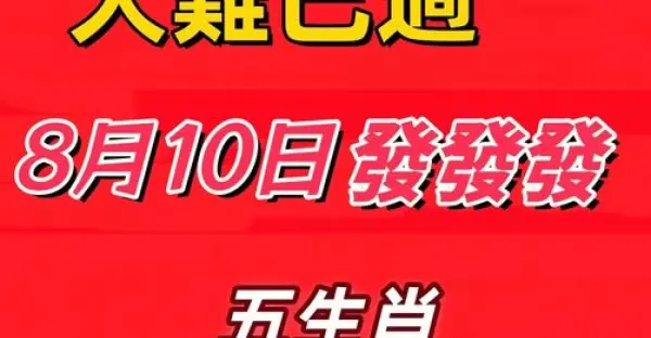 大難已過 今天8月10號開始 五生肖 即將撞好運