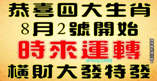 8月2號開始時來運轉,橫財大發特發的生肖(有你嘛)
