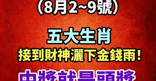 未來七天(8月2 到 9號)接到財神灑下金錢雨!中獎就是頭獎的生肖