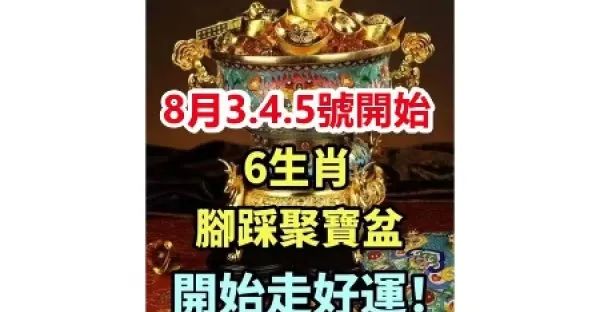 8月3.4.5號開始,腳踩聚寶盆的6生肖,開始走好運!
