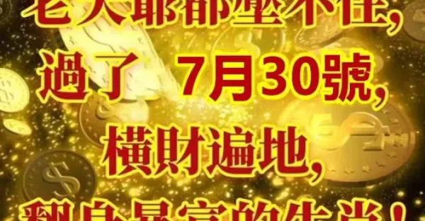 老天爺都壓不住,過了7月30號橫財遍地,翻身暴富的生肖