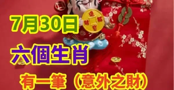 7月30日有一筆(意外之財)的六個生肖,鈔票滿溢,鴻運當頭