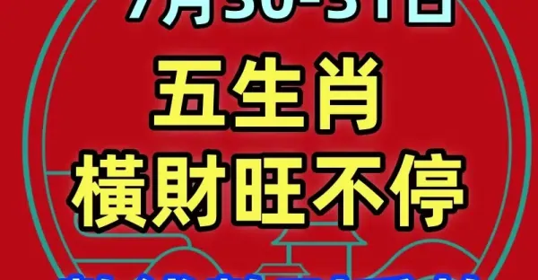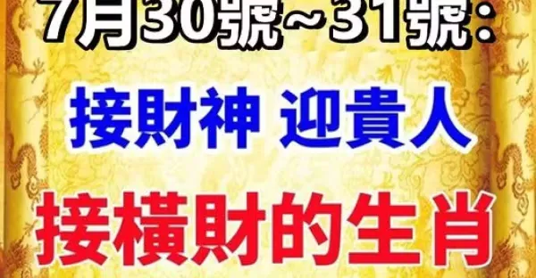 7月30號~31號:接財神,迎貴人,接橫財的生肖!