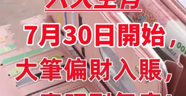 7月30 到 31日,5生肖橫財旺不停,數錢數到手軟