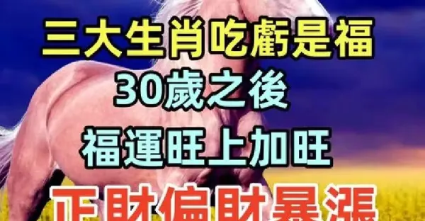 三大生肖吃虧是福,30歲之後福運旺上加旺,正財偏財大暴漲