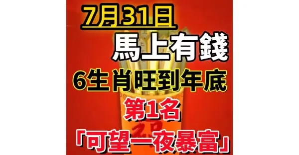 明天31號 (7月最後一天)橫財最旺的六生肖