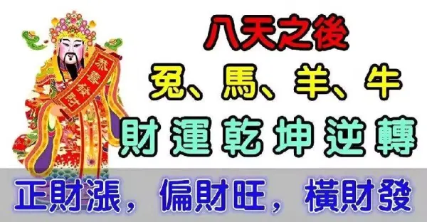八天之後(兔、馬、羊、牛)正財漲,偏財旺,橫財發
