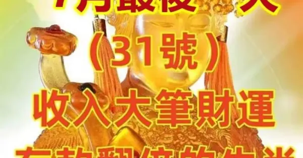 7月最後一天(31號)收入大筆財運,存款大翻倍的生肖 !
