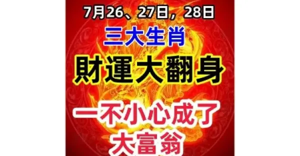 7月26、27日,28日,三大生肖「財運大翻身」,一不小心成了大富翁