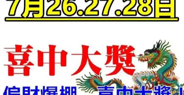 7月26.27.28日:偏財爆棚,喜中大獎的生肖快來接!