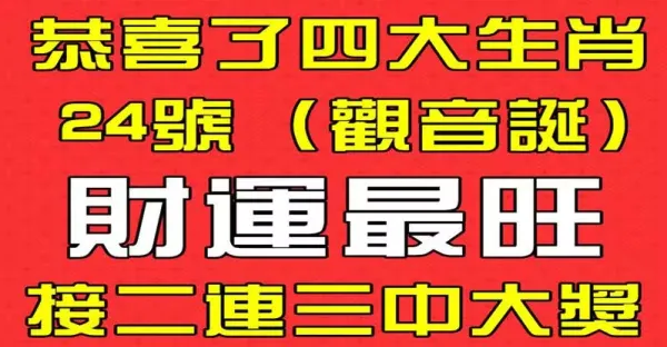 7月24號(觀音誕)開始財運最旺,接二連三中大獎的生肖(恭喜上榜者)