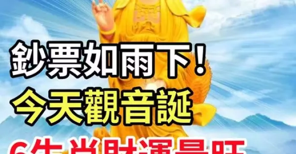 鈔票如雨下!今天觀音誕,6生肖財運最旺,第1名「錢自動上門」