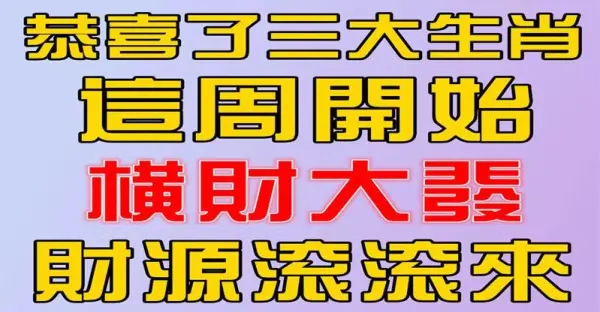 恭喜了三大生肖,這周開始橫財大發,準備好財源滾滾來~