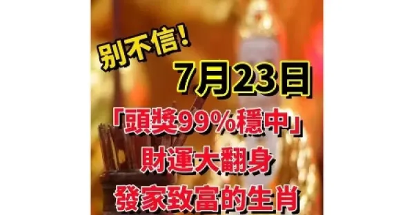 7月23日「頭獎99%穩中」財運大翻身,發家致富的生肖有你嘛!