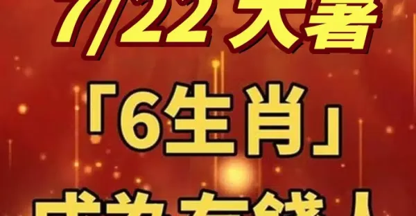 好運擋不住!明天【大暑】過後「錢多的花不完」的6大生肖 「富貴享不盡」吃穿都不用愁