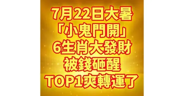 7月22日大暑「小鬼門開」6生肖大發財,被錢砸醒! TOP1爽到轉運了
