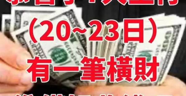恭喜了7大生肖,在未來三天( 7月20 到 23日)即將有一筆橫財!準備好收錢吧!