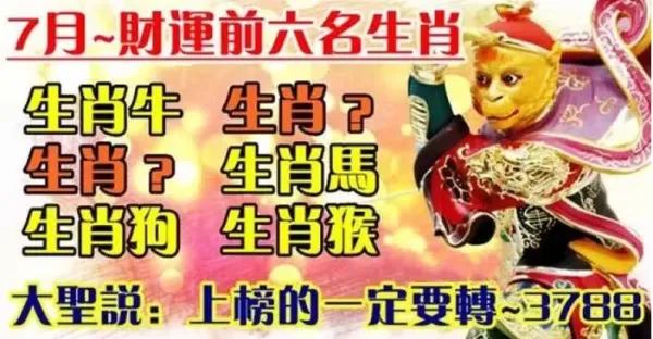 7月份開始~財運前六名的生肖,大聖說:上榜的一定要轉