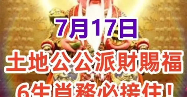7月17日:土地公公派財賜福,6生肖務必接住!