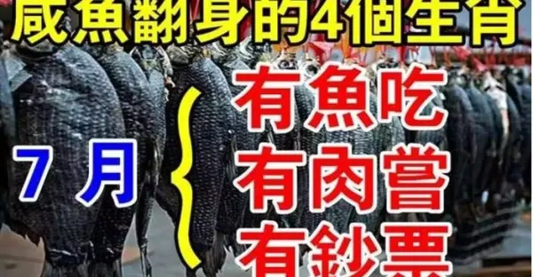 7月份有魚有肉有鈔票,鹹魚翻身的四個生肖