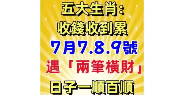 收錢收到累!7月7.8.9號,遇「兩筆橫財」日子一順百順的生肖!
