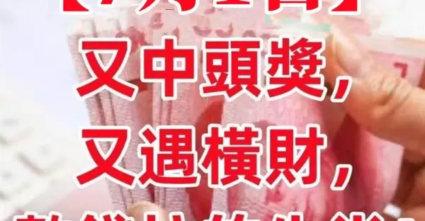 7月1日(下半年第一天)又中頭獎,又遇橫財,數錢忙的生肖!