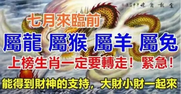 7月有四喜,恭喜四大生肖