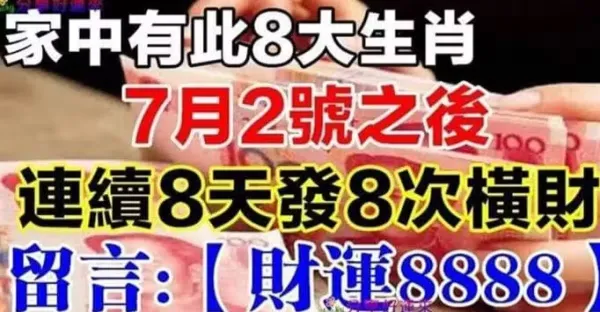 7月2號之後連續八天發八次橫財的八大生肖