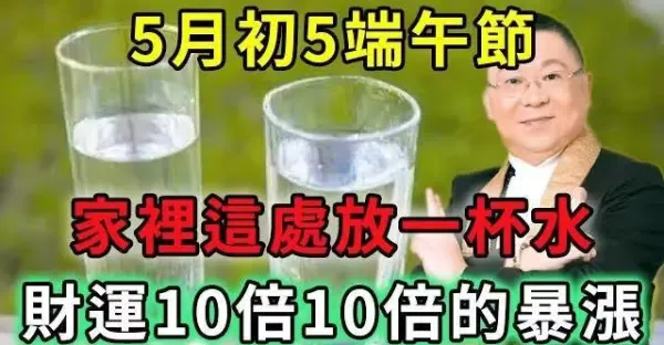 風水大師忍不住洩露:5月初5端午節,家裡這處放一杯水,財運10倍10倍的暴漲!實在太靈驗