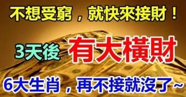 不想受窮就快來接財,三天後就有大橫財,六大生肖再不接就沒了