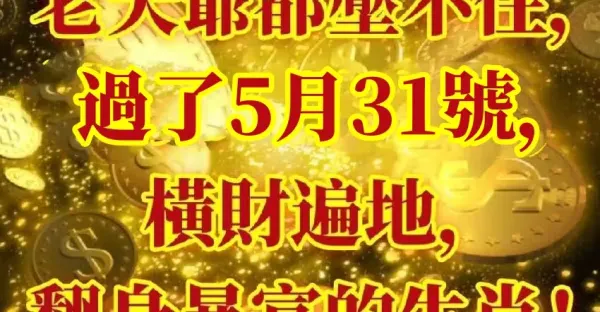 老天爺都壓不住,過了5月31號橫財遍地,翻身暴富的生肖