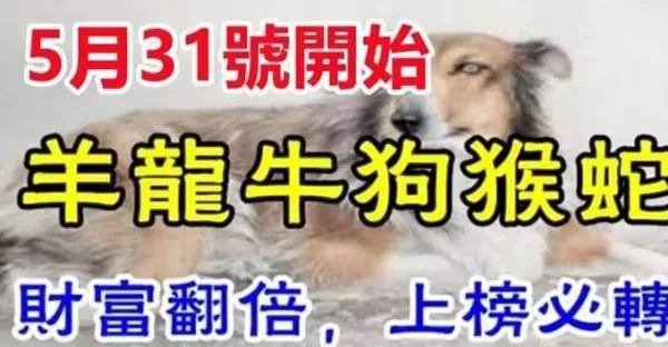 明天31號 (5月最後一天)橫財最旺的六生肖