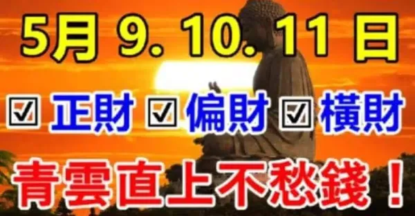 5月9.10.11日有正財偏財橫財,青雲直上不愁錢的生肖