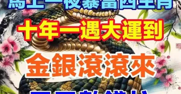 馬上一夜暴富「四生肖」,不出5天,十年一遇大運到,金銀滾滾來,天天數錢忙