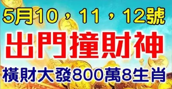 5月10,11,12號出門撞財神爺,財運橫生,橫財大發的八生肖