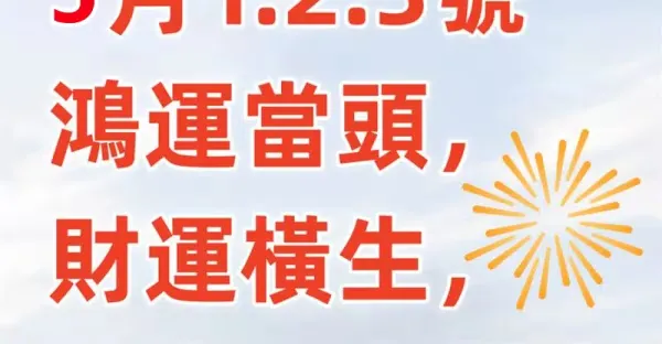 5月1.2.3日,六生肖大賺一筆,坐等接財哦!