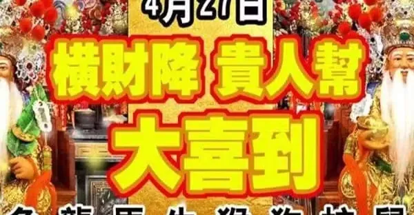 4月27日橫財降,貴人幫,大喜到的生肖快來接