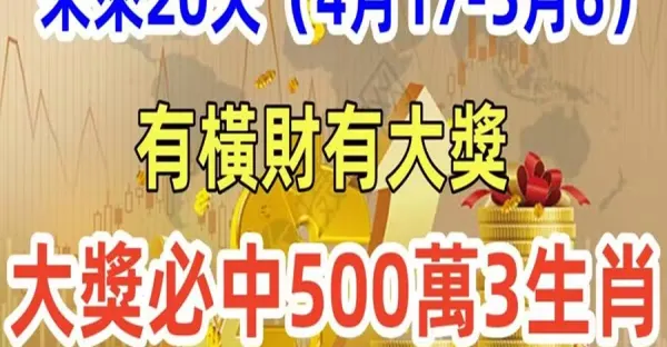 未來20天(4月17到5月6)有橫財有大獎,大發特發,大獎必中500萬3生肖