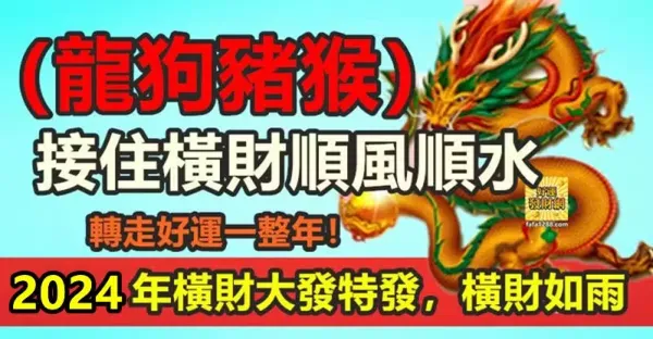 2024年橫財大發特發,橫財如雨 ,四大生肖接住橫財順風順水有你嘛