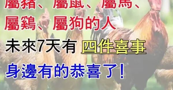 【屬豬、屬鼠、屬馬、屬雞、屬狗的人】未來7天有「四件喜事」身邊有的要恭喜了!