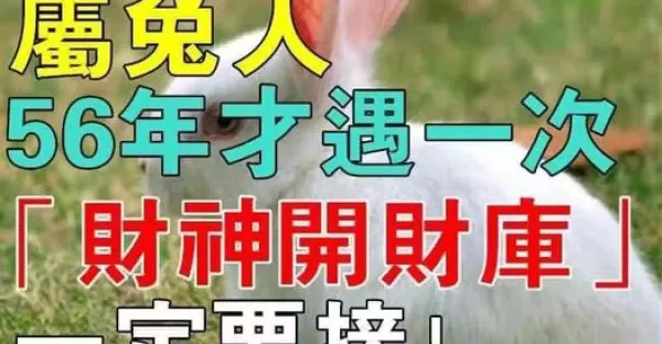誰家有「屬兔」的人?56年才遇一次的「財神開財庫」一定要來接財哦